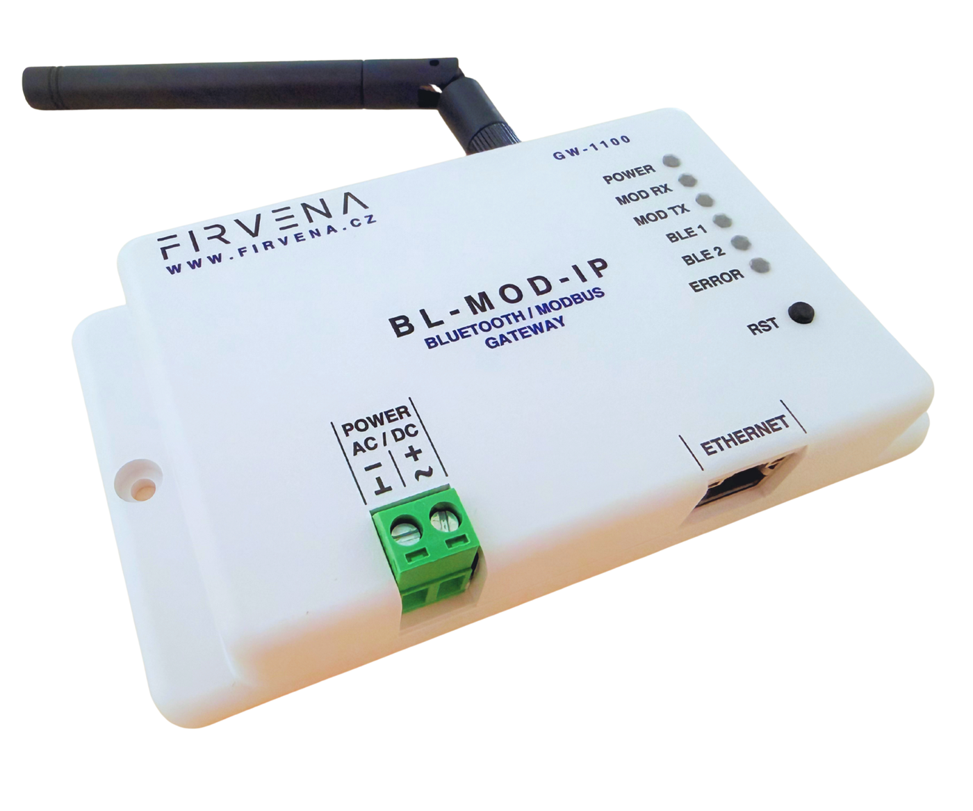 BL-MOD-IP is a communication gateway for Bluetooth Low Energy (BLE) wireless sensors, designed for reliable data acquisition and seamless integration into higher-level systems. It efficiently collects data from RUUVI Bluetooth sensors and transmits it via the standard Modbus TCP/IP protocol, ensuring easy integration into industrial control systems and building automation applications.